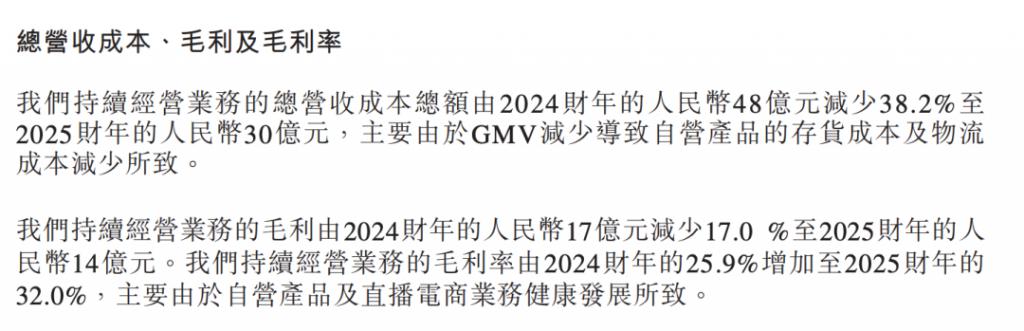 成本下降也是利润改善的重要因素。2025 财年,东方甄选持续经营业务总成本从 48 亿元降到 30 亿元,下降超过 38%,其中库存和物流成本下降占了大头。员工数量也减少了 482 人,薪酬开支降到 12 亿元,同比下降 17.6%。这些数字显示公司正在控制成本,为盈利保底。