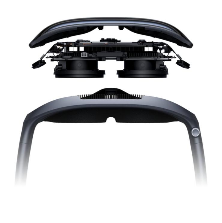 将电池、模组等集成在极薄的空间里,同时采用分体式设计(将电池和计算单元外置),头部仅保留显示屏幕、传感器和必要的光学组件。
