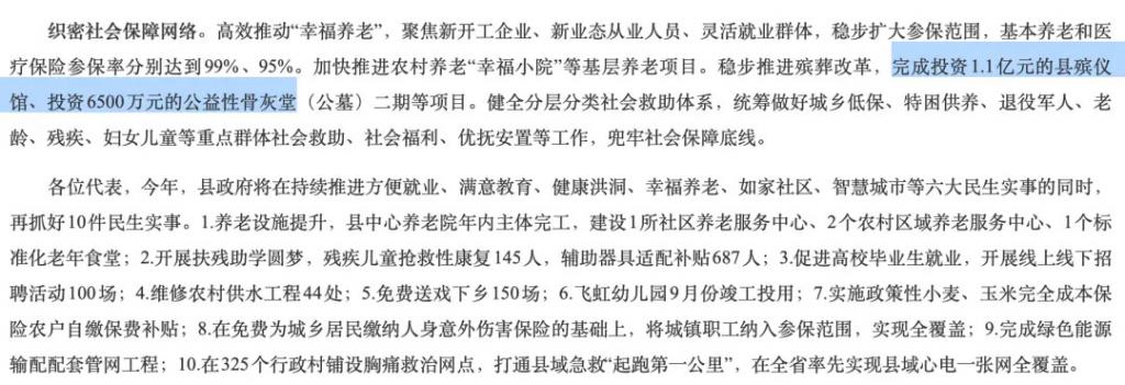 洪洞县2025年政府工作报告中提及完成投资1.1亿元的县殡仪馆 / 图源:临汾市政府网