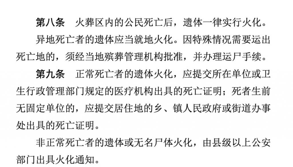 《山西省殡葬管理办法》中规定火葬区内公民死亡后,遗体一律实行火化 / 图源:中国公墓网
