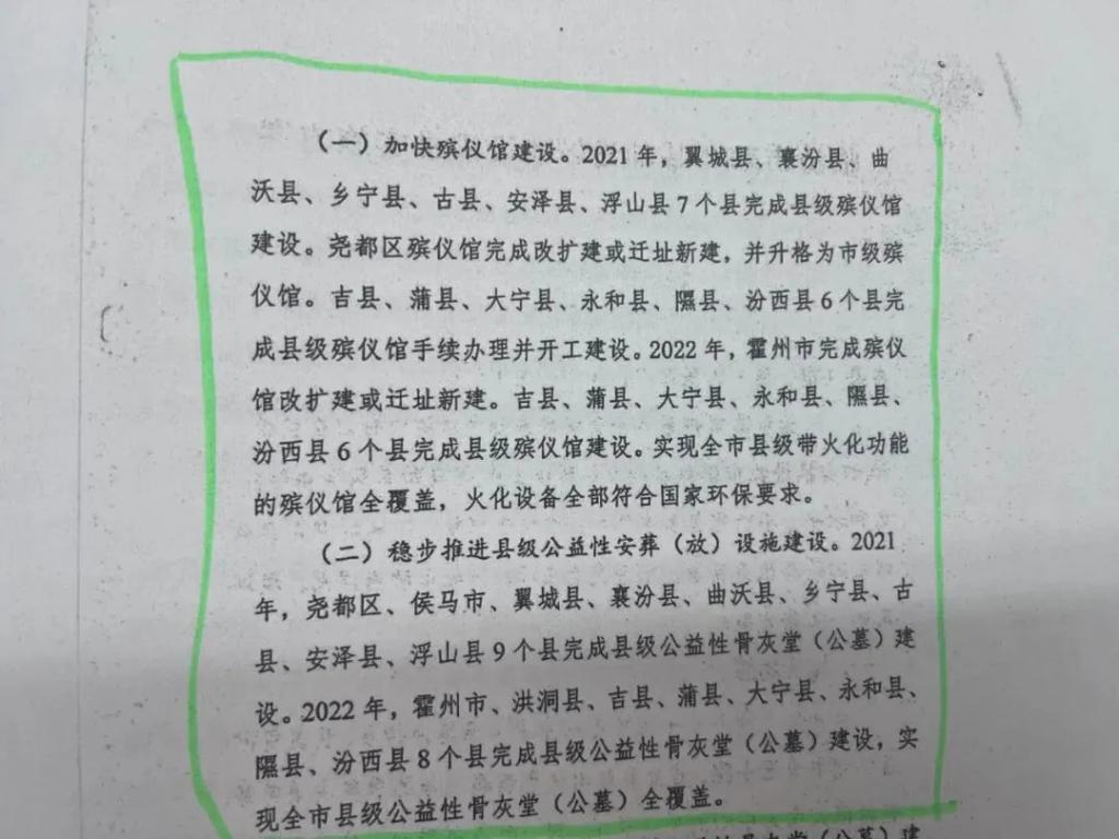 于是,他们开始向有关部门反映洪洞县新建殡仪馆的行为,违反了2021年山西省发布的"意见"中"建设带火化功能的殡仪馆,原则上一县一个"的要求。