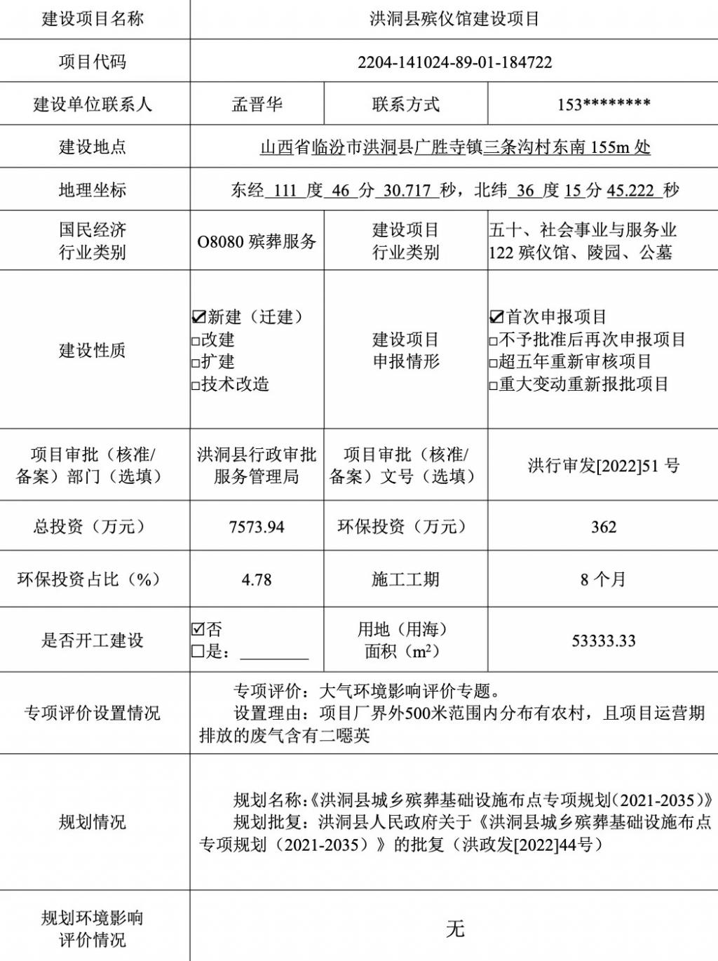 2023年,洪洞县殡仪馆报审建设项目 / 图源:临汾市政府网