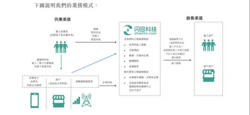 对于普通消费者来说,闪回科技旗下两大品牌,负责前端回收的 " 闪回收 " 和负责后端销售的 " 闪回有品 " 都相对陌生。整个流程中,它都避开了与 C 端用户的直接沟通,上游对接手机品牌和运营商的零售店,下游则主要对接二手手机商户客户。