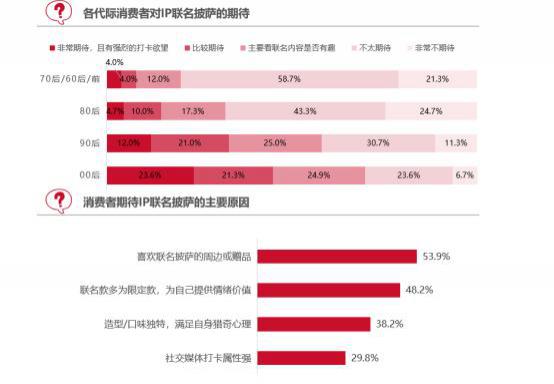 披萨正逐渐从单纯的食物演变为情绪价值载体,呈现出明显的内容化消费趋势:作为消费生力军的 00 后或被联名披萨的精美周边吸引,或期待限量款披萨的情绪价值,或出于猎奇心理,对 IP 联名披萨的期待远高于其他代际群体,推动披萨的食物内涵边界向文化、潮流等内容载体延伸。在满足味蕾需求的同时,披萨借助联名内容传递情绪、链接同圈层受众,使披萨消费深度嵌入内容生态,从物质享用迈向文化内容与社交体验的融合新阶段。