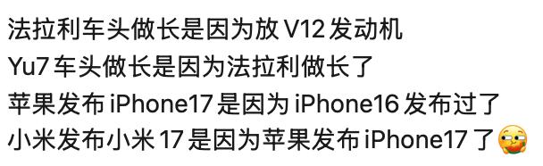 在这个框架中,用户会自然地将它与市面上的 17(当然是 iPhone17)进行联想,从而觉得小米和苹果是同一档次的竞争者。