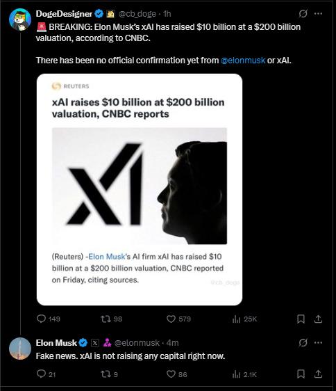 不过在周五稍晚,马斯克在 X 平台发文称这份报道是 " 假新闻 ",并表示 "xAI 目前并没有筹集资金 "。