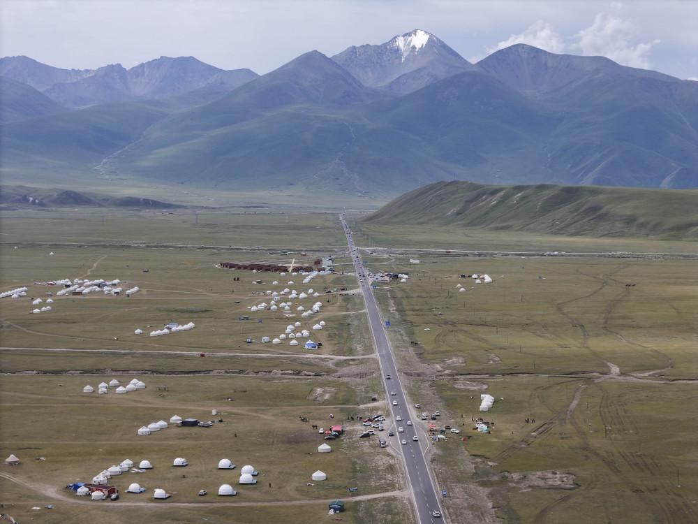 这是 7 月 16 日拍摄的新疆独库公路及沿途草原景观(无人机照片)。新华社记者 胡虎虎 摄