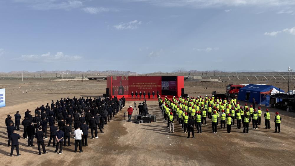 这是 9 月 20 日在新疆阿克苏地区库车市拍摄的独库高速开工分会场。(新疆维吾尔自治区交通运输厅供图)