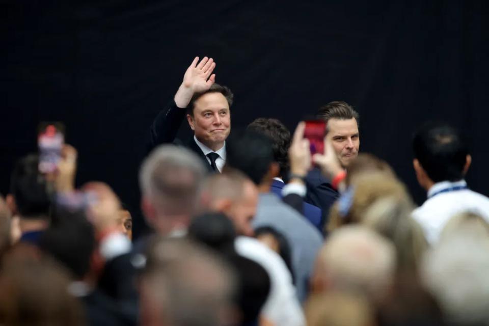 当世界首富的身影出现时,人群立刻沸腾了起来,很多人举起了手机,而马斯克也是颇为配合地向人们挥手。