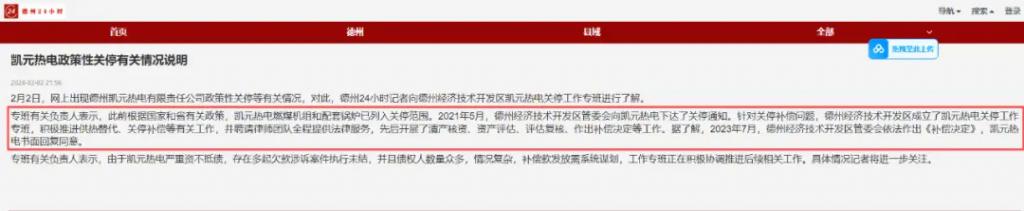 按照国家及山东省相关关停政策,凯元热电须经山东省能源局组织专家验收,最终在其官网上公示才算正式关停。