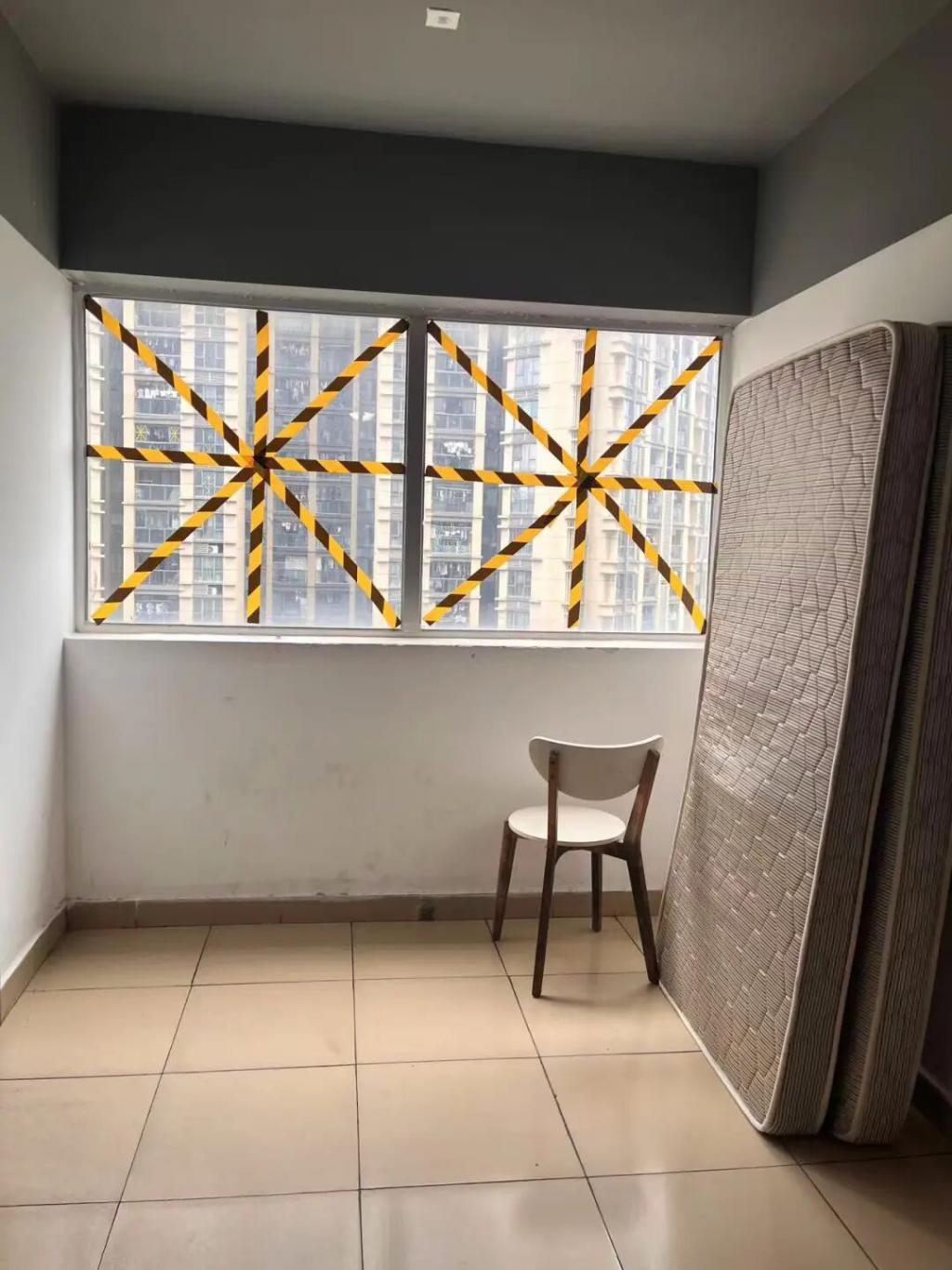 ▲深圳居民用胶带加固玻璃。受访者供图