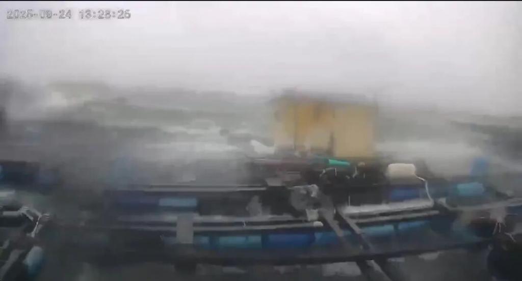 台风“桦加沙”过境:海水倒灌,货车被吹侧翻