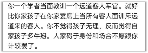 还有人建议阎学通学会谦卑,不要对人家发达国家的军事行为说三道四。