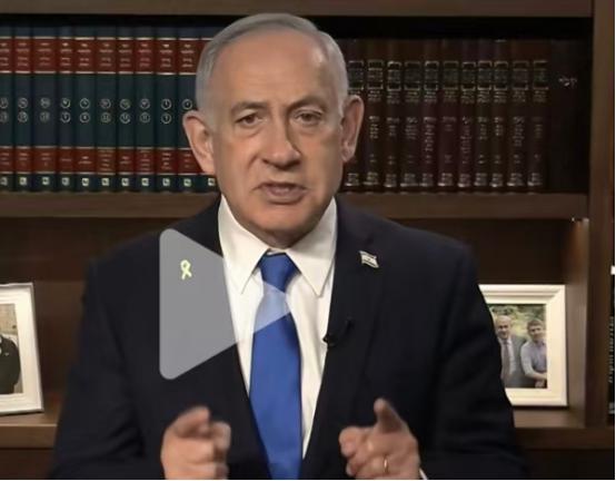 你看,内塔尼亚胡公开讲话的时候也会举起他的手指: