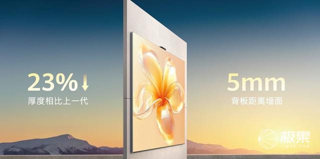 而且外观采用超薄设计,离墙缝隙只有 5mm,像一幅画一样贴在墙上,能轻松融入各种家居风格。