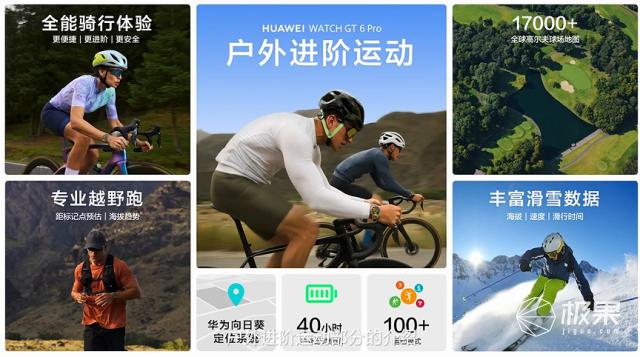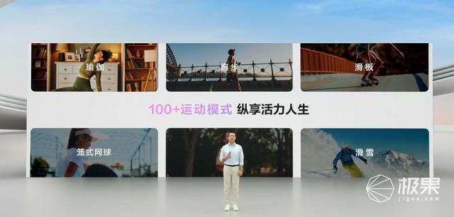运动上除了常规 100+ 运动模式,还重点升级了骑行、滑雪、越野跑和高尔夫四大户外场景。