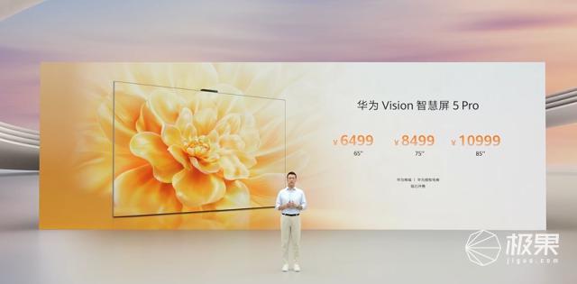 华为 Vision 智慧屏 5 Pro —— 65 英寸(6499 元)、75 英寸(8499 元)、85 英寸(10999 元)。现已在华为商城、授权电商开售。
