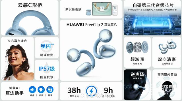 说完了手表,接着是这款耳机新品——华为 FreeClip 2 耳夹耳机。