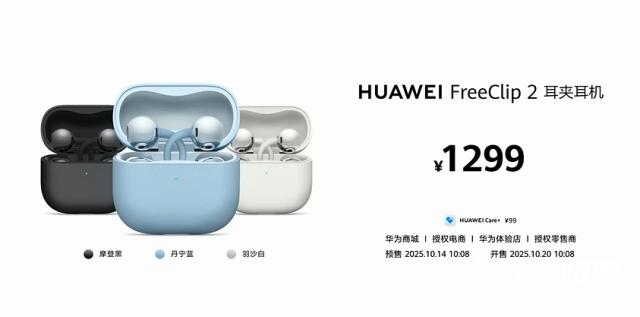 华为 FreeClip 2 耳夹耳机,价格 1299 元(10 月 14 日 10:08 开启预售,10 月 20 日 10:08 正式开售)