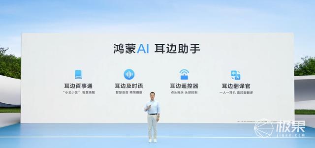 内置鸿蒙 AI 耳边助手,可实现播报、唤醒、翻译等功能。