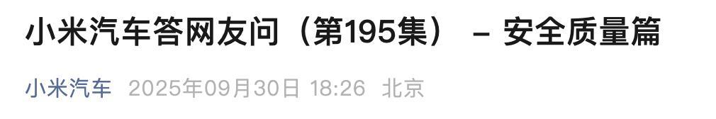 9 月 30 日,小米汽车发布 " 答网友问(第 195 集) - 安全质量篇 " 回应超强钢小字标注为 " 项目名称 "。