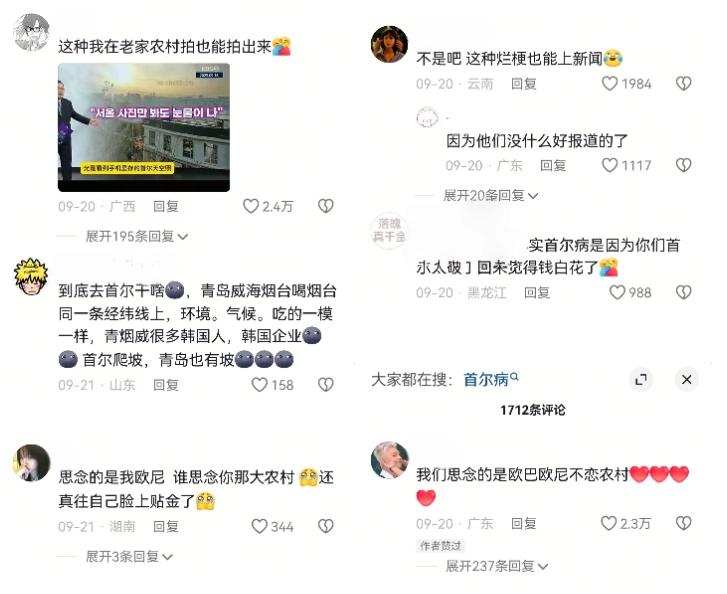 韩国媒体关于 " 首尔病 " 的报道传回中文互联网后,很快就引起了更多的质疑。有网友感慨,这种梗也能上新闻,被其他人回复因为韩国没有什么好报道的。有网友调侃,其实 " 首尔病 " 是因为去过之后发现首尔太破,感觉钱白花了。