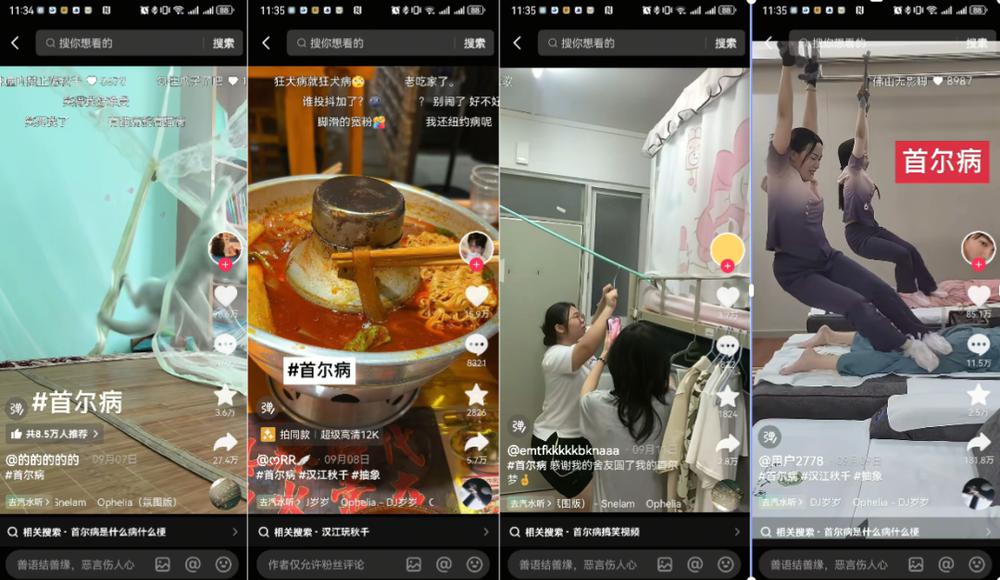 在抖音上热传的 " 首尔病 " 视频,大都是这种搞笑创作