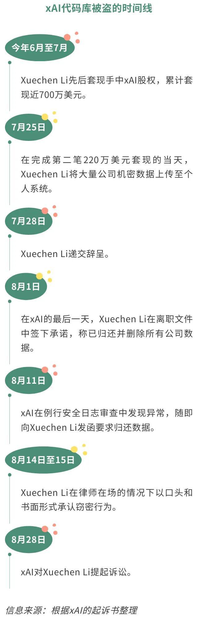 就在窃密事件发生前,Li 刚刚将手中的 xAI 股权套现,累计获利近 700 万美元。