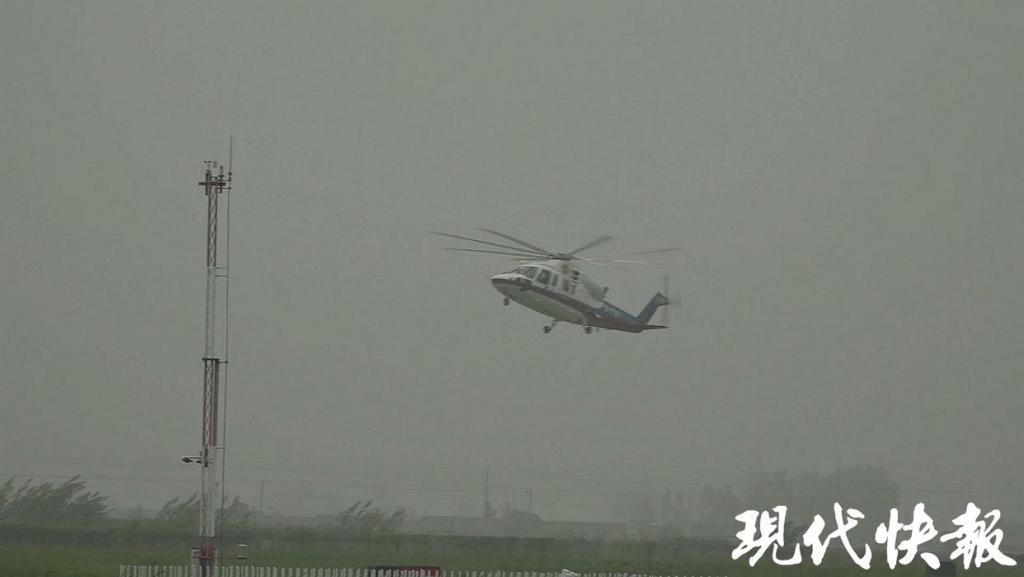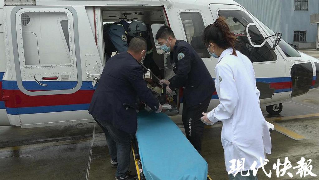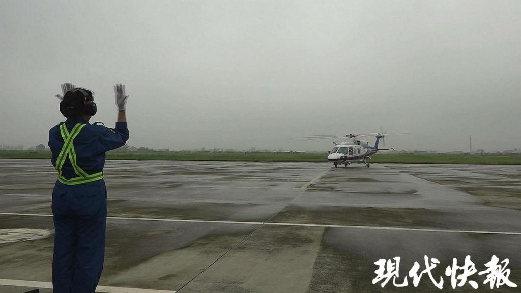 早上 6 点 25 分左右,天空下起了毛毛雨,救助直升机从射阳通用机场起飞后,快速朝渔船所在海域飞去。到达渔船上空后,因海上风浪较大,渔船左右摇摆,直升机上的救生员经过几次尝试,才成功下降到渔船的甲板上,之后将受伤渔民固定在担架上,迅速吊运进机舱后返回。