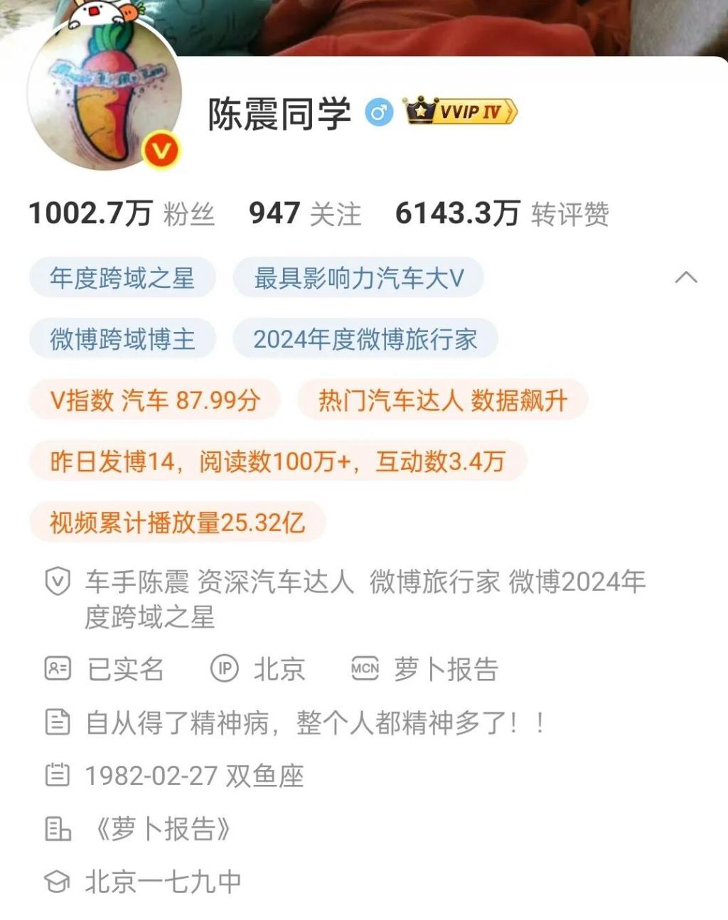 另据三湘 . 都市报记者查询发现,陈震 2023 年曾在微博发文称自己买车险只买交强险,原因是自己开车规矩而且车多,所以买车损险不划算。
