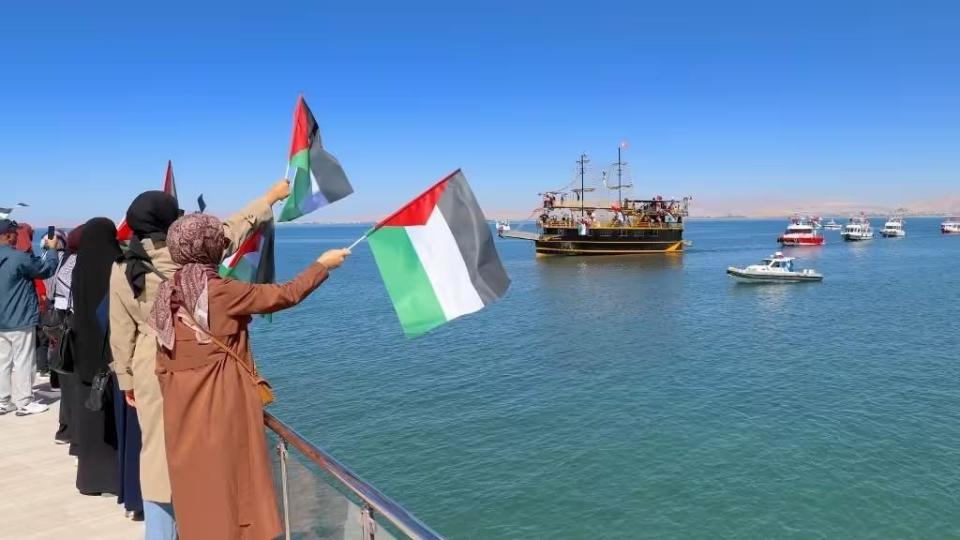 10 月 1 日至 2 日夜间,以色列扣押 " 全球坚韧船队 "41 艘船只及 470 多名参与者,这些船只原计划驶往加沙地带运送人道主义援助物资。10 月 3 日,该船队宣布,最后一艘(即第 42 艘)船只也已被扣押。以色列警方表示,被扣船只上的人员已移交人口和移民局、以色列监狱管理局进一步处理,后续将被驱逐出境。