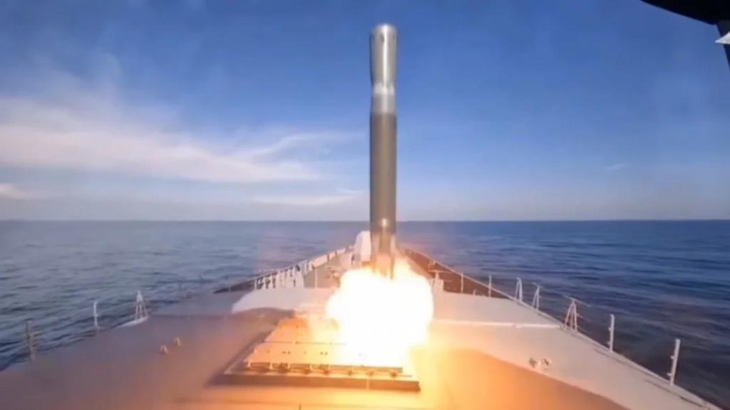 " 锆石 " 导弹脱离护卫舰垂直发射装置瞬间