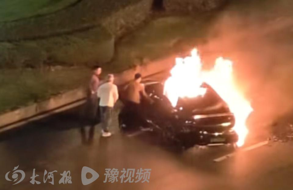另有现场视频显示,一辆车辆起火,有多位路过群众前往施救,尝试拉开车门未果。