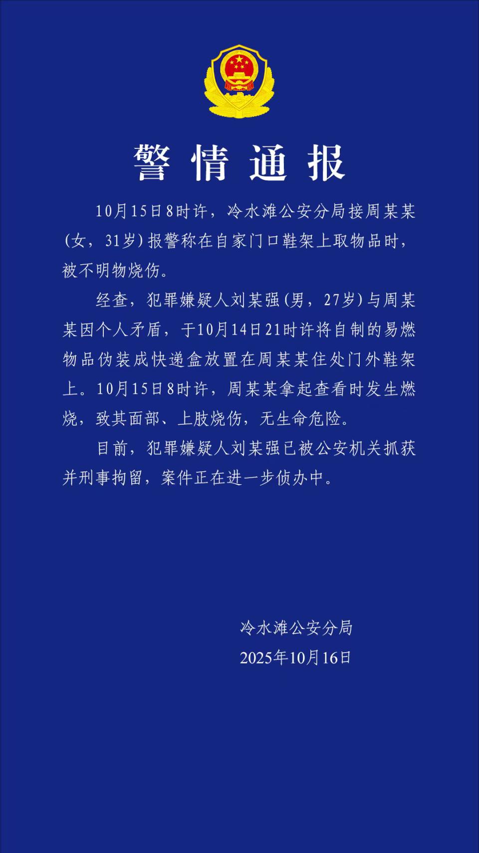女主播称遭伪装快递包裹炸伤 湖南永州警方:犯罪嫌疑人已被刑拘