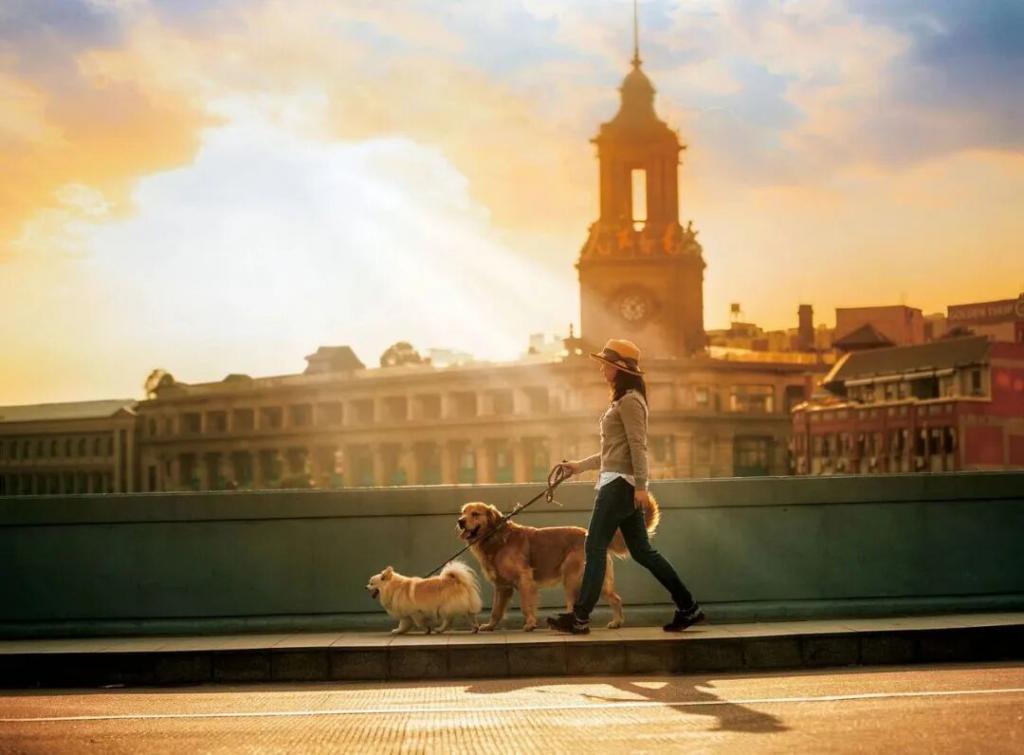 上海外滩,遛狗的市民 / 图源:视觉中国