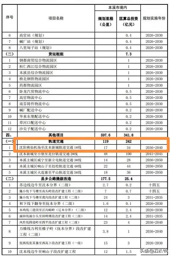 沈本轨道交通列入规划