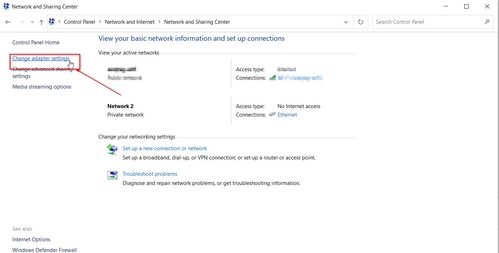 4. 在“网络和共享中心”窗口中,点击左侧的“更改适配器设置”。