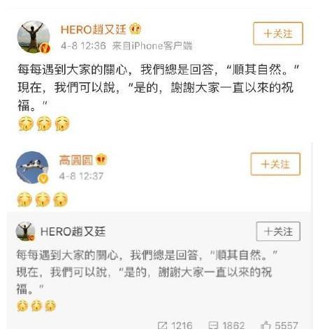 这下,高圆圆和赵又廷终于圆满了,恭喜他们!
