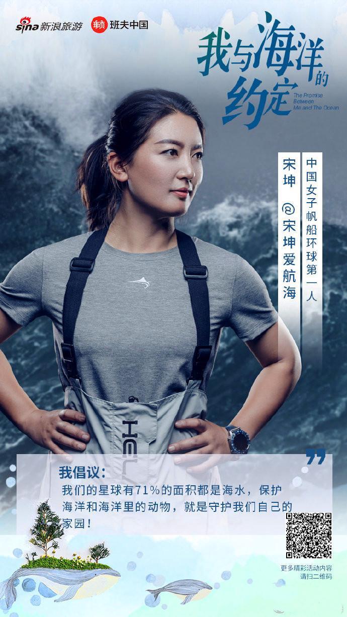 今年“6·8”世界海洋日,宋坤通过微博倡导公众参与“海有WE蓝”活动,旨在传播海洋保护蓝色正能量。在由新浪旅游等单位发起的“我与海洋的约定”活动中,她发出倡议:我们星球有71%的面积都是海水,保护海洋和海洋里的动物,就是守护我们自己的家园。