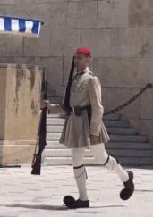 希腊的换岗仪式,动作夸张表情严肃,真的是一本正经的搞笑