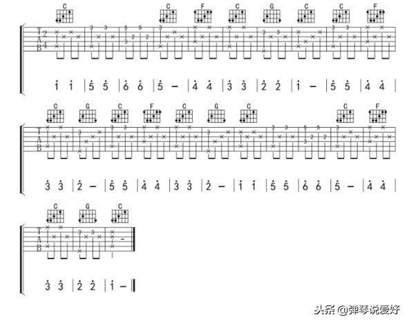 初学吉他小星星可帮识谱:零基础学吉他,学小星星是朗朗上口,歌曲本身是四四拍的歌,四分音符为一拍,一小节有四拍,就叫四四拍,4分音就是光杆司令的音符,后面不带点,下面不带横,这叫四分音,节拍器响一下,就是四分音,每一小节都是独立的四分音组成的,所以,唱起来简单有节奏,节拍也均匀,不复杂,对于初学者来说,先唱,然后再弹,时值和节奏都好把握。