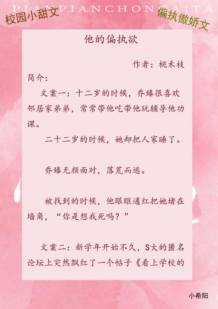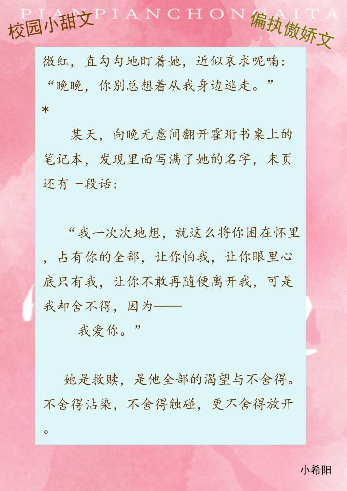 今天推荐三本校园小甜文,男主偏执傲娇,心里、本子上写满了心里话,代表了沉甸甸的爱,简直爱惨了女主。
