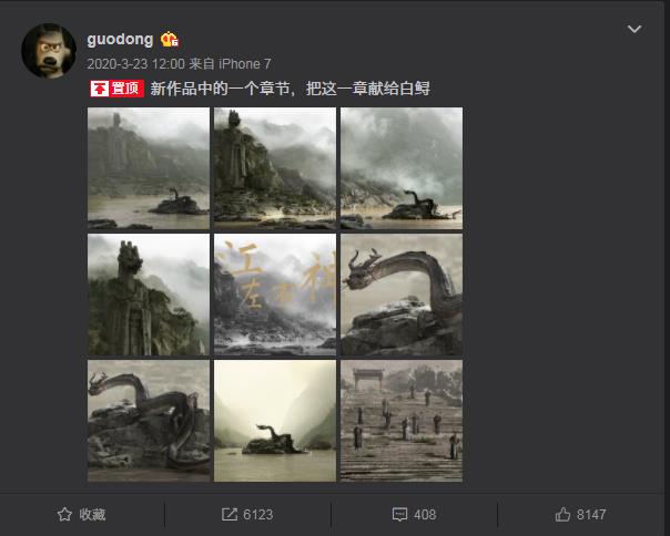 解铃还须系铃人,这些所谓的“蛟龙出水照”都来自微博大佬guodong的主页,他自称是一位胡乱创作人,但其微博里放出的作品,制作精良,以假乱真,这些“蛟龙出水照”都出自其手,是一位CG大师。
