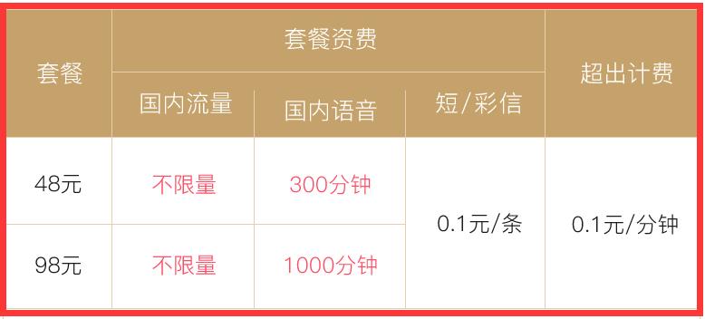 升级后的冰淇淋套餐全国无限流量套餐有两个档次,48元月租和98元月租,均包含全国不限流量,短信、彩信均是0.1元/条。48元月租档次,再送300分钟国内语音通话;98元月租档次送1000分钟语音通话。按照平常打电话资费,最低也要0.1元/分钟,而300分钟语音通话,就相当于30元了,1000分钟语音通话就相当于100元了,因此升级后的冰淇淋套餐,还是十分值得的。