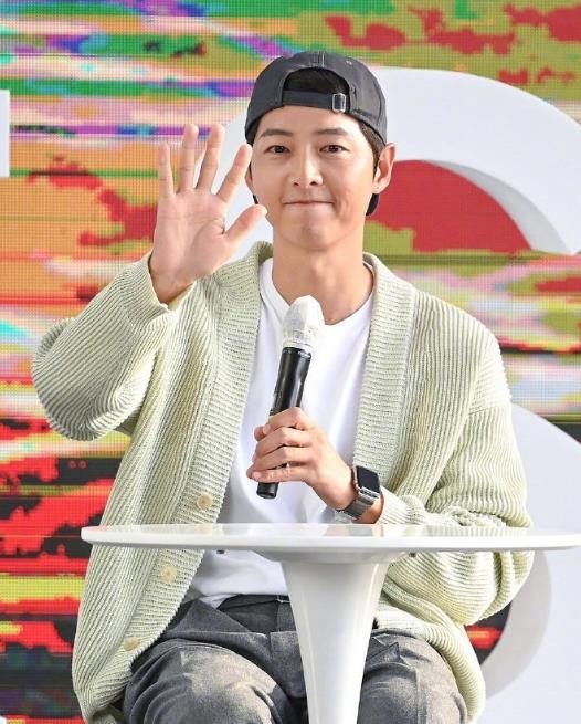 只见宋仲基一身休闲装反戴棒球帽,造型简约又不失时髦,而不同往日的严肃认真,整个人显得更加随性自然。