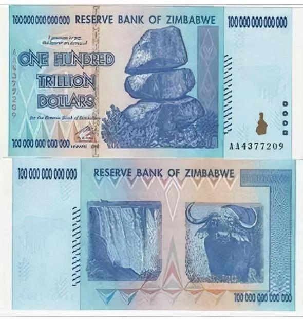 最大面值纸币:100万亿津巴布韦元