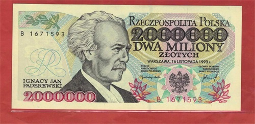 波兰历史上最大的面值是2000000(200万)兹罗提钞票,它是由于在上世纪80年代90年代初,波兰的通货膨胀更趋激烈,政府更大量发行10,000、20,000、50,000、100,000、200,000、500,000、1,000,000、2,000,000面值的兹罗提钞票。