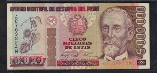 秘鲁的货币原为索尔(Sol),但1985年又发行新币印蒂,旧索尔流通至1990年,1991年秘鲁政府批准发行新货币,以新索尔代替印蒂,1000旧索尔=1印蒂,1新索尔等于100万印蒂。
