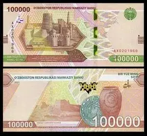 最大面值纸币:10万索姆