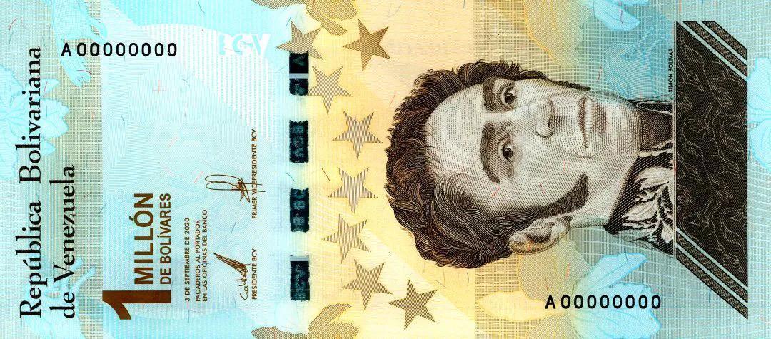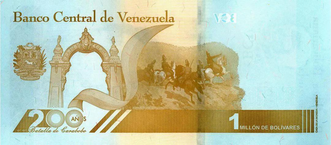 最大面值纸币:100万玻利瓦尔
